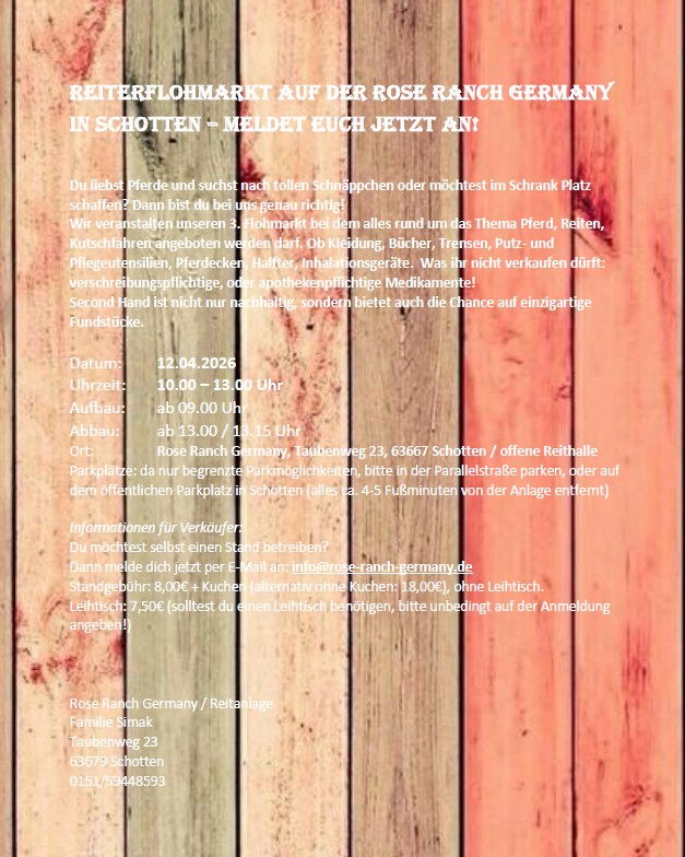Anmeldeunterlagen über: info@rose-ranch-germany.de
